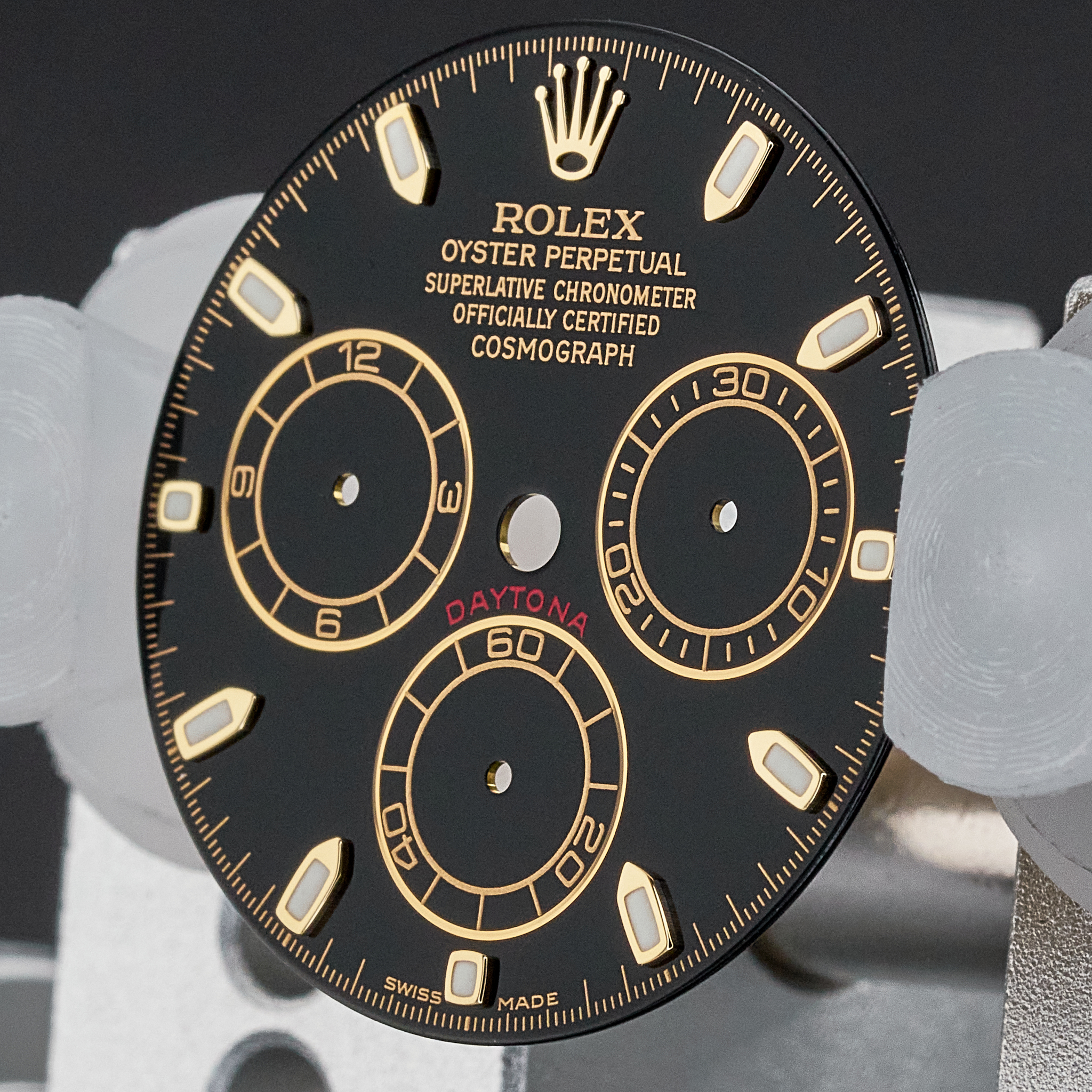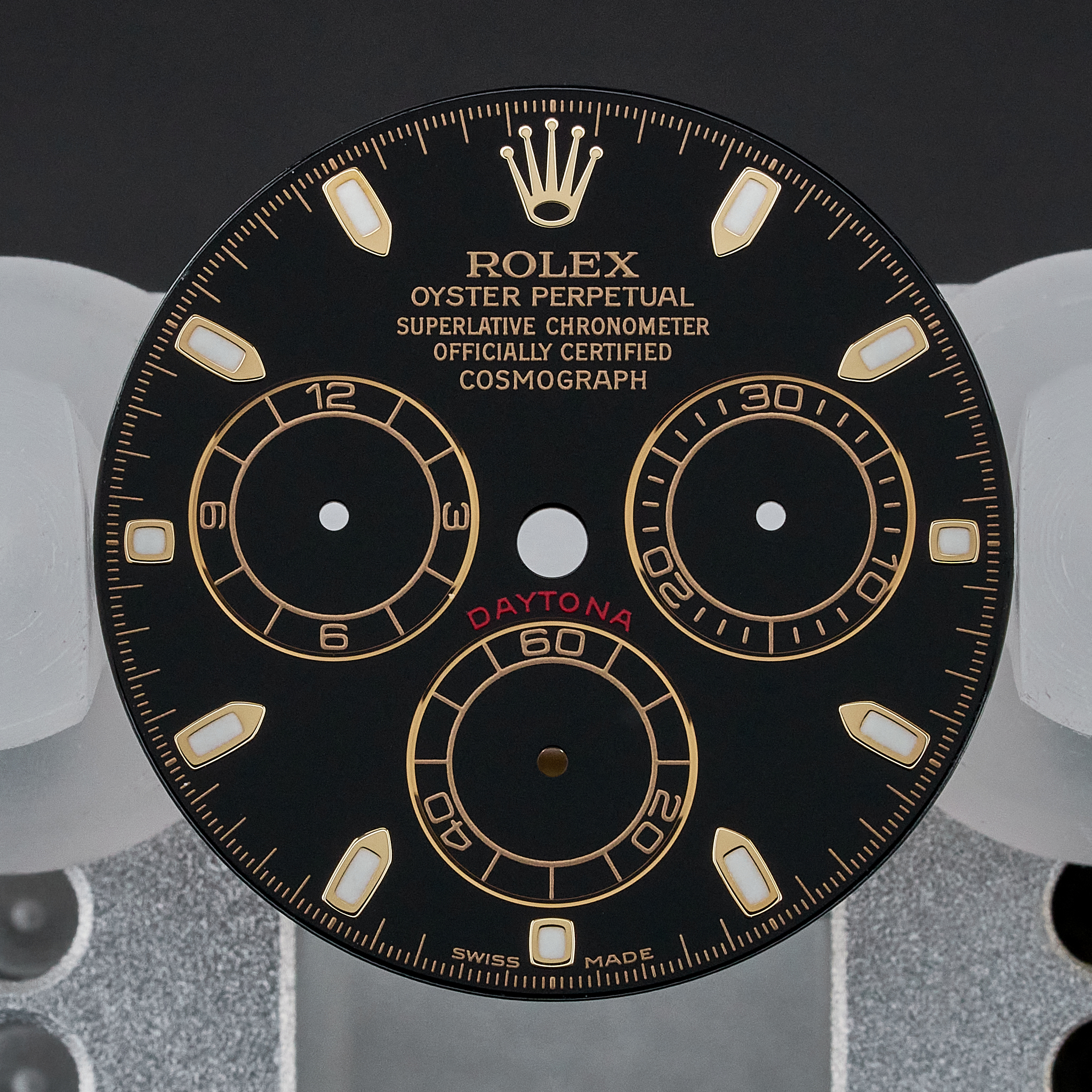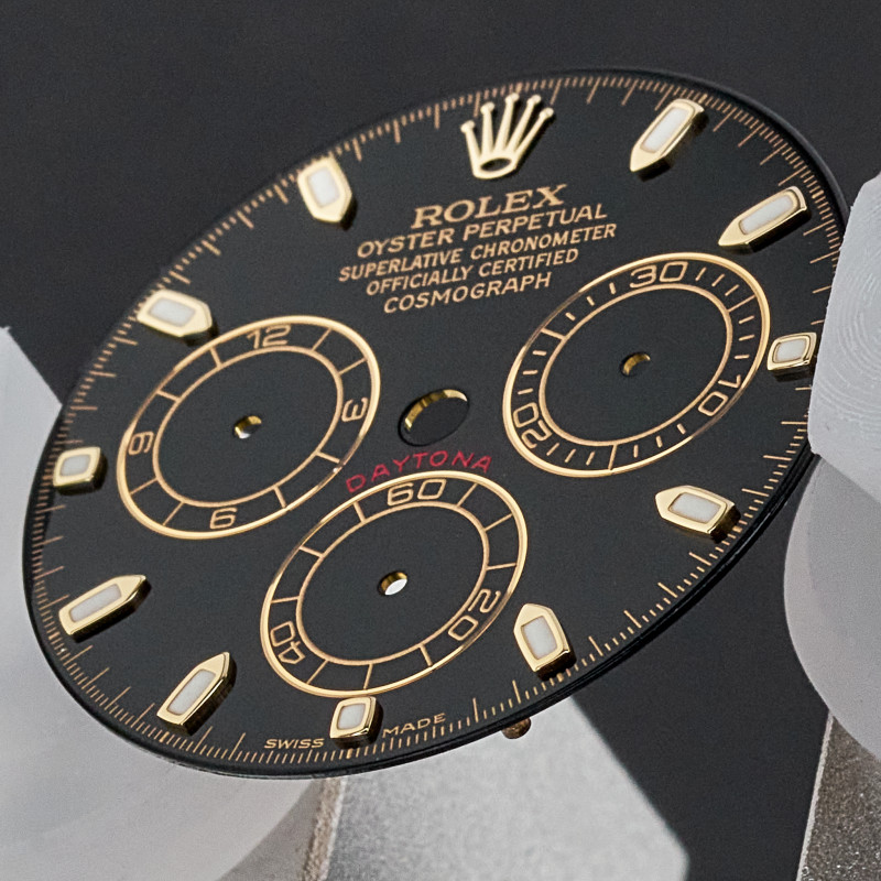 Original Rolex Daytona black dial (Swiss Made) with hands set. Suitable for reference 116523, 116528, 116508, 16523.