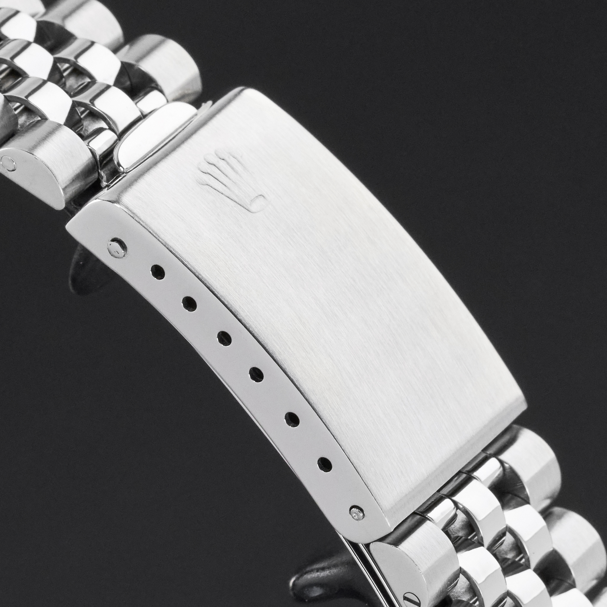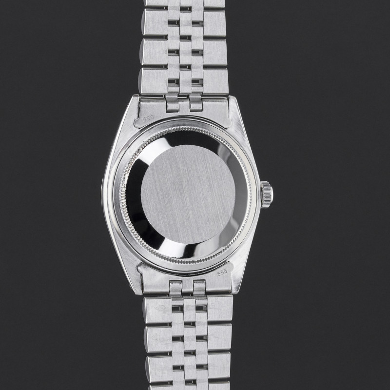 This particular Rolex Datejust introduced in 1978, offers a refined vintage aesthetic with its understated grey dial and classic fluted white gold bezel. The monochromatic palette adds a touch of modern minimalism while preserving the timeless appeal of the Datejust line. Clean hour markers and the balanced dial layout reflect Rolex’s enduring design principles.