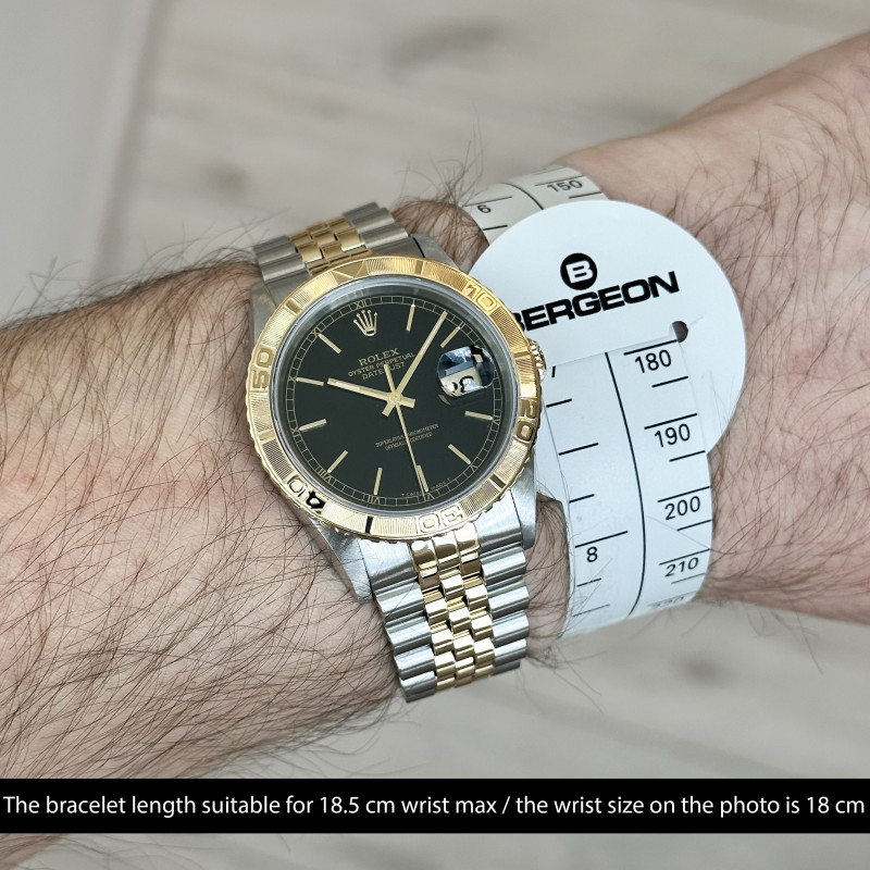 This particular Rolex Datejust Turn-O-Graph introduced in 1997, stands as a bold expression of classic design and functional elegance. Its sleek black dial contrasts beautifully with the signature rotating bezel, offering both style and practicality in perfect harmony.
