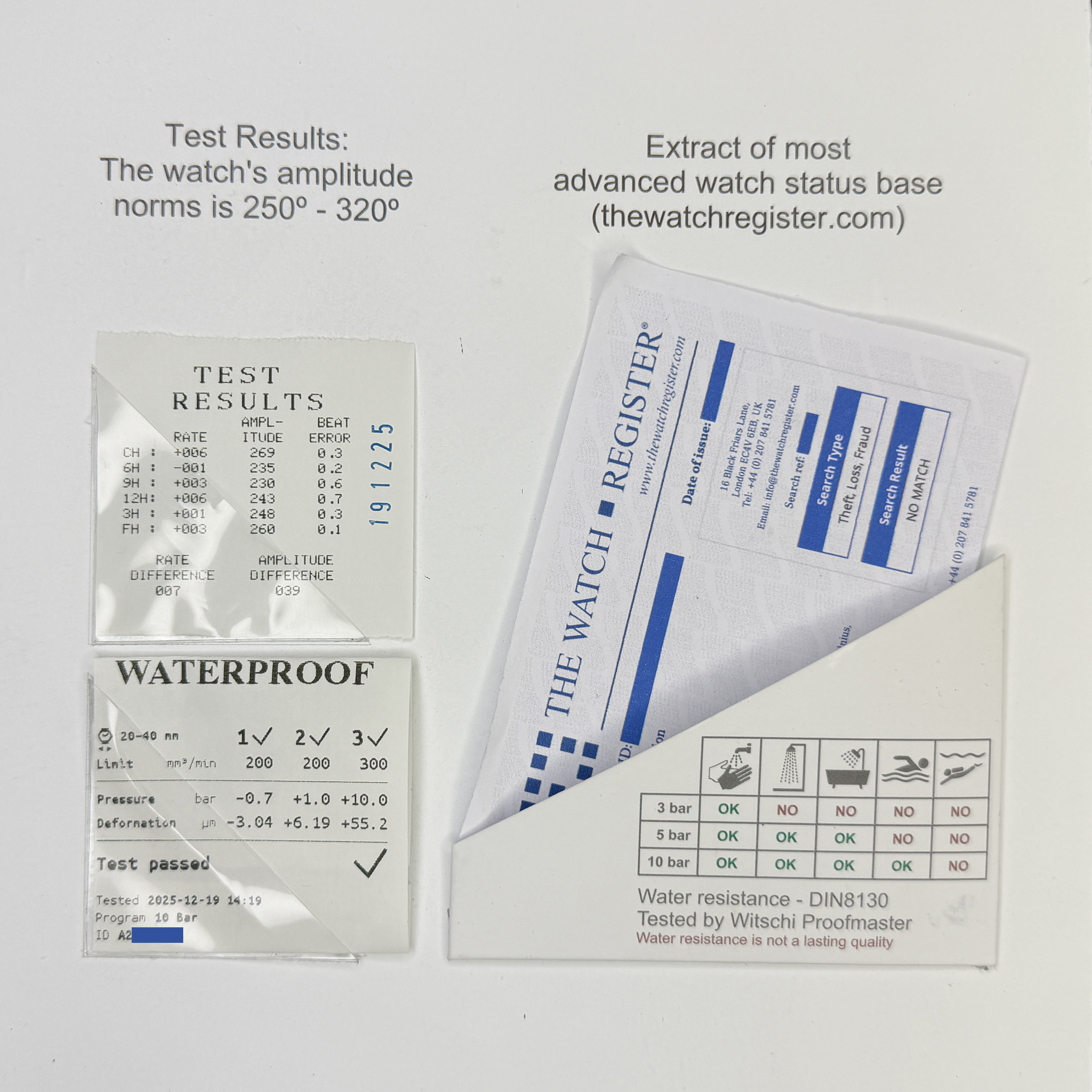 • Watches are serviced in our own workshop by our 12 experienced watchmakers.