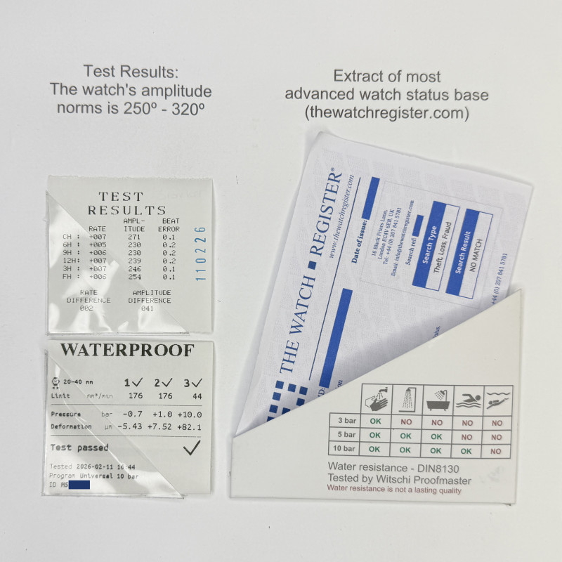• Watches are serviced in our own workshop by our 12 experienced watchmakers.