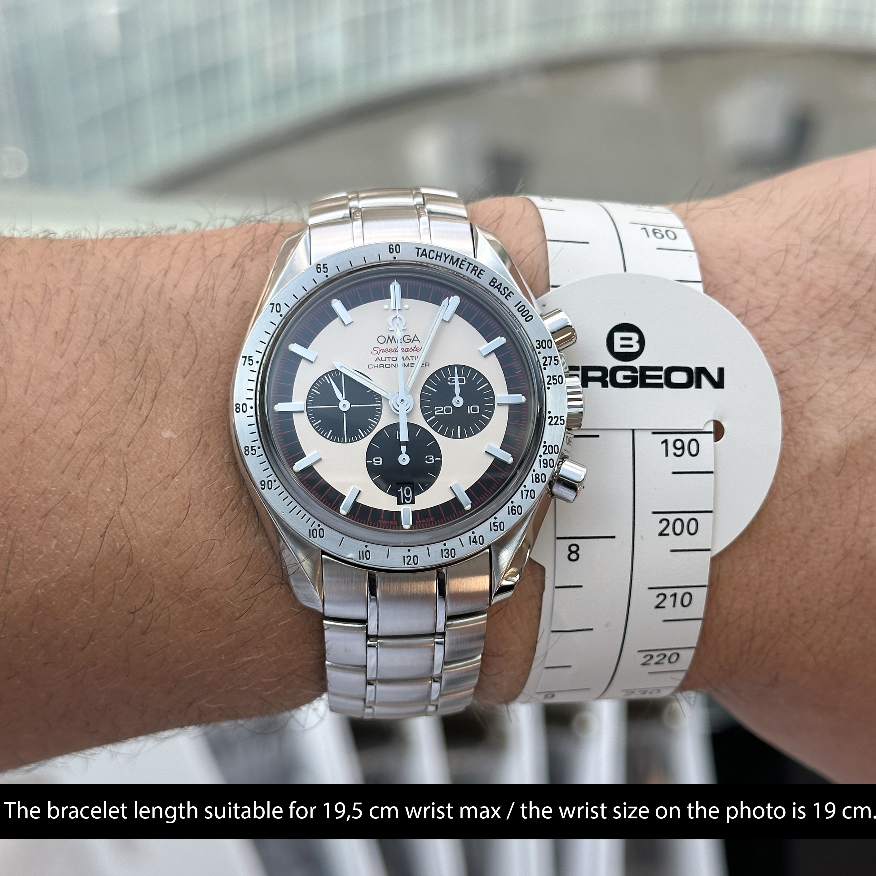 Bracelet: The watch is presented on an original stainless steel bracelet “Omega” around 19,5 cm including the watch case, with the “Omega” logo clasp.