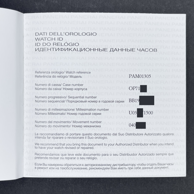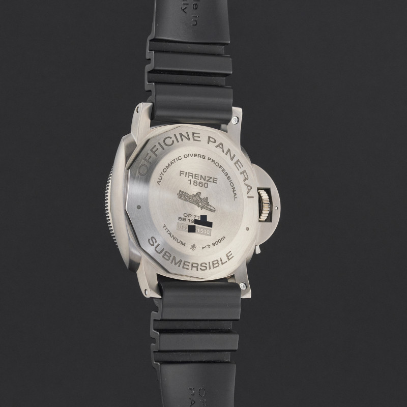 This Panerai Luminor Submersible PAM 01305 features a Black dial and is crafted from titanium, with a production year of 2018. Case No: OP7181BBXXXXXXX