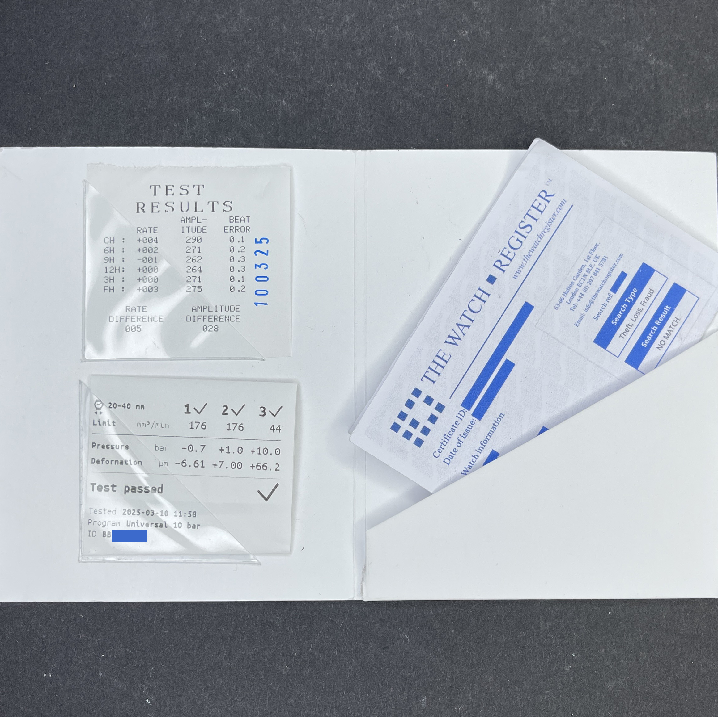 It comes with: • With our own exclusive Certificate of Originality • A The Watch Register Search Certificate, both legally recognized as proof of due diligence.