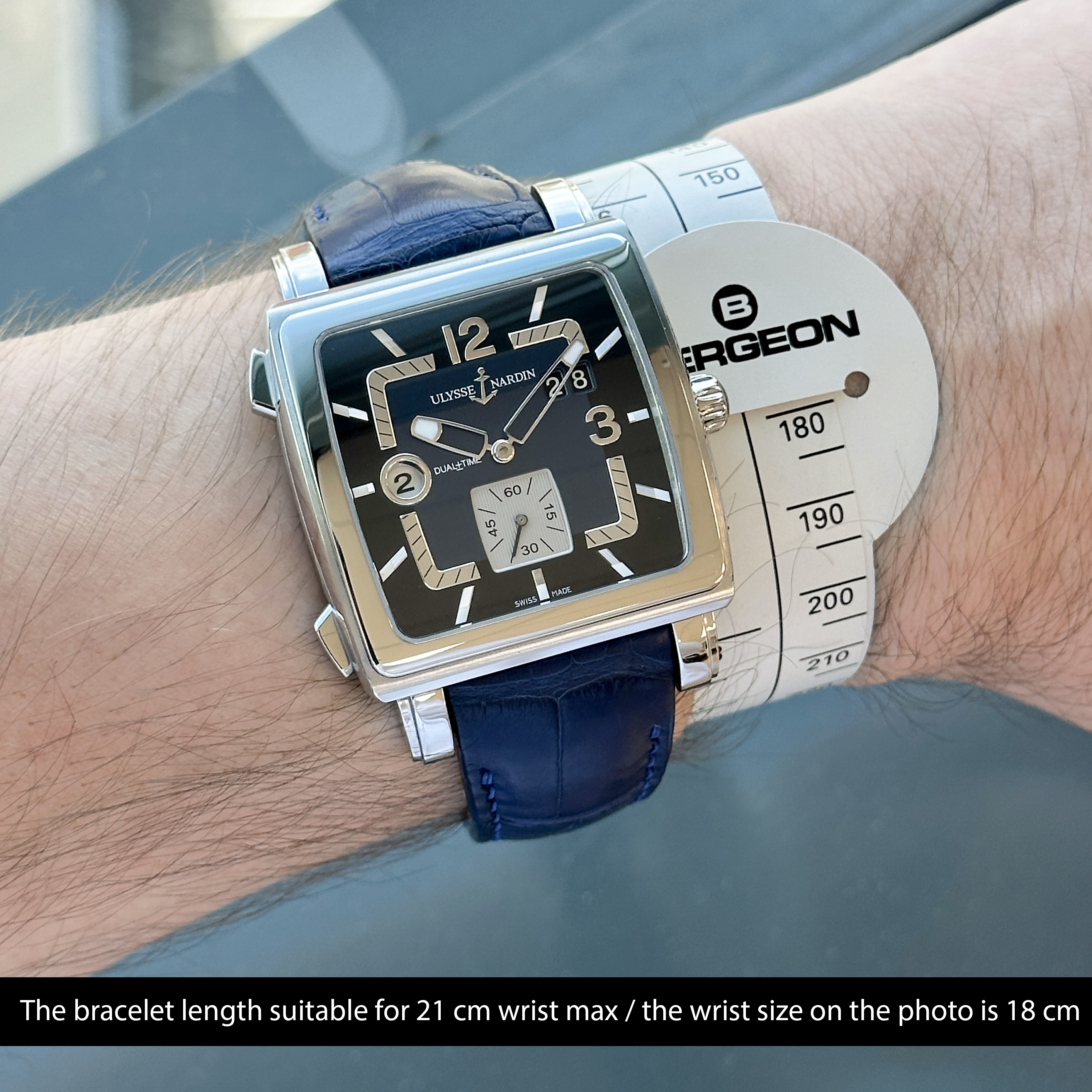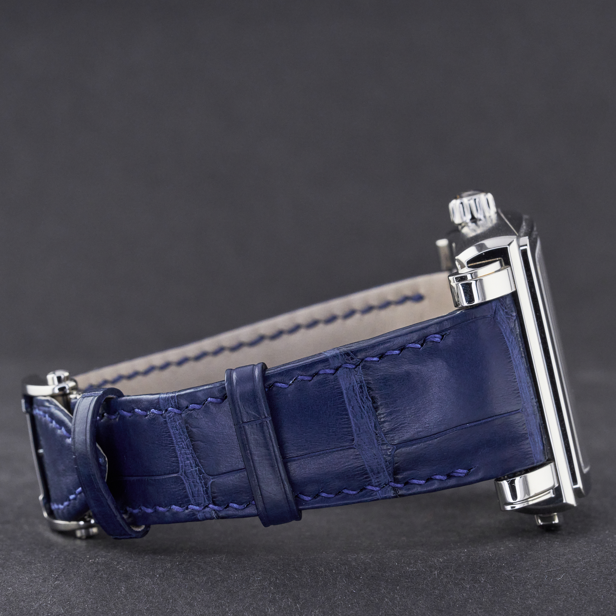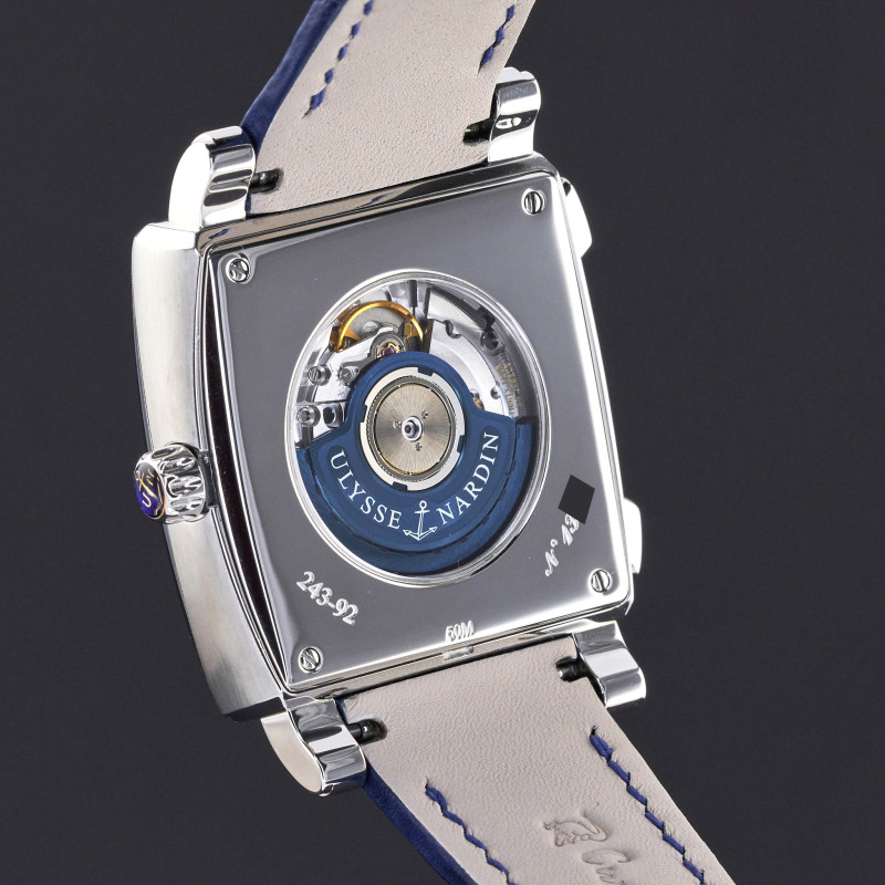 This Ulysse Nardin Quadrato Dual Time 243-92 features a Blue arabic dial and is crafted from stainless steel, with a production year of 2009. Case No: 12XX