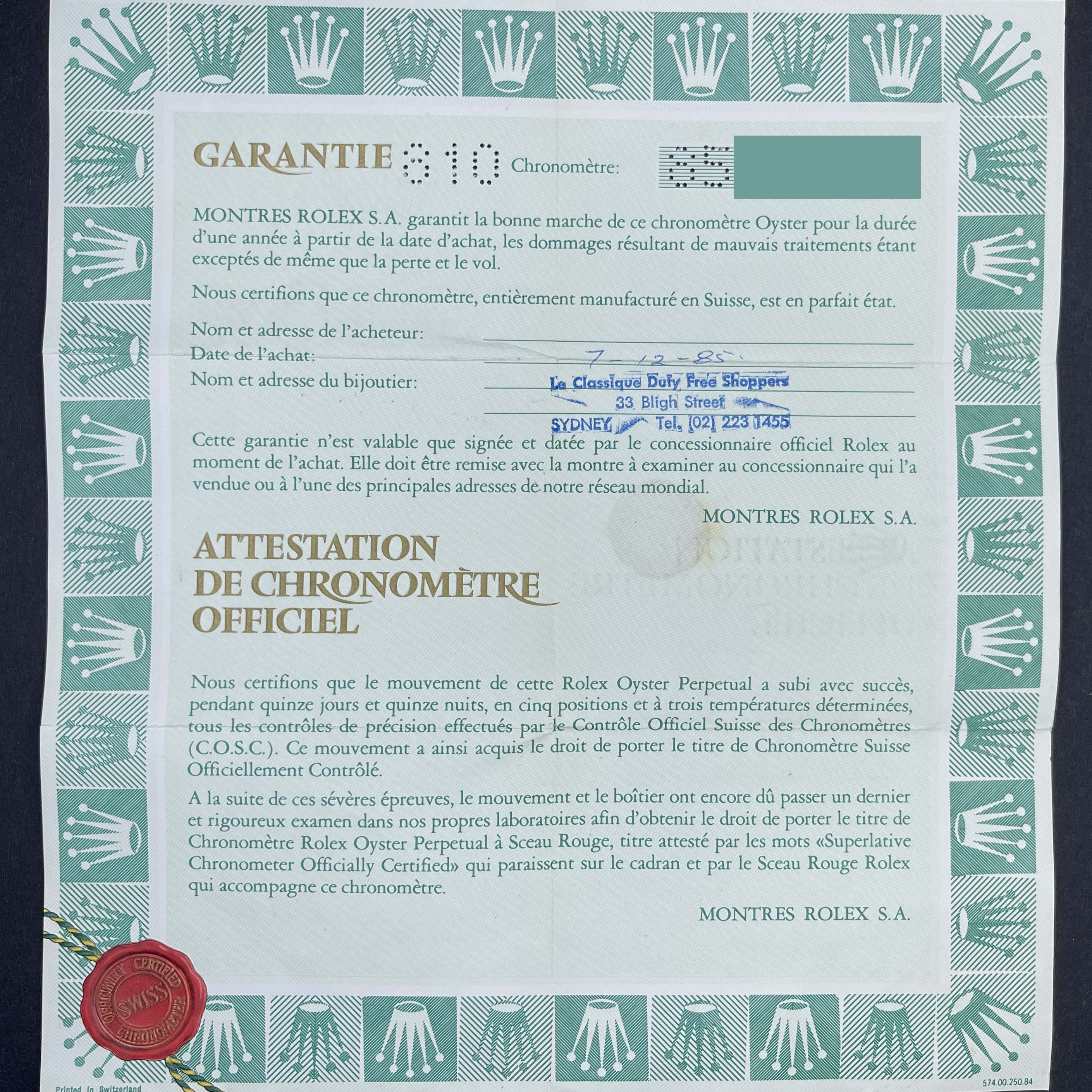 PLEASE NOTE THAT ALL OUR WATCHES ARE CAREFULLY SERVICED BY OUR 13 WATCHMAKERS. The service includes movement cleaning in special equipment, oiling and accuracy adjustment. After service we check accuracy of all watches on the Timegrapher and make 48 hours test on the Cyclotest.